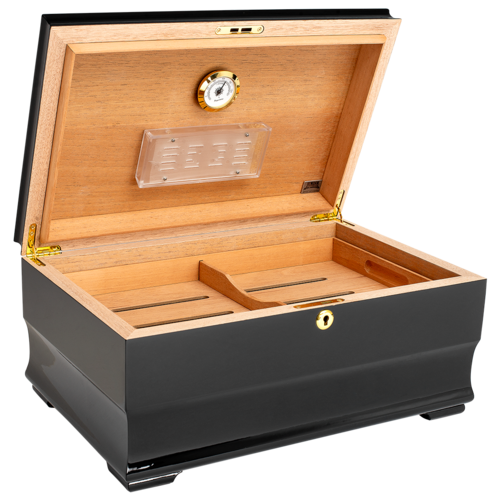 Humidor Supreme® Malta SKU HS-670BLK $204.99 Quantity discounts available QuantityPrice Color Black Quantity -+ Add to Cart Details 85-135 cigar capacity16 x 10 1?2" x 7 1?2"HygrometerCrystal humidifierSpanish cedar trayAdjustable dividers... Details Back Details85-135 cigar capacity16 x 10 1?2" x 7 1?2"HygrometerCrystal humidifierSpanish cedar trayAdjustable dividersLock & key